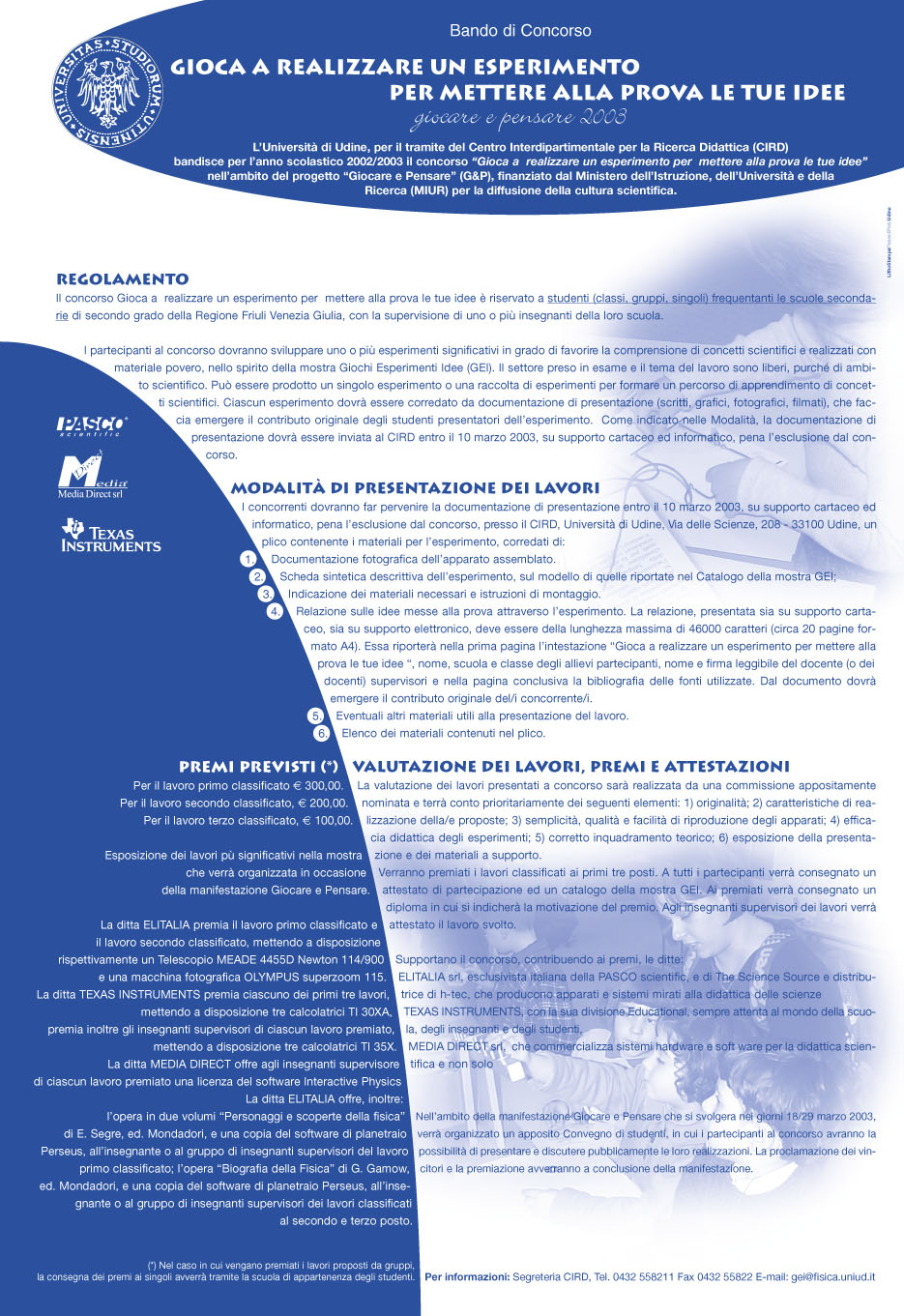 partecipare squadre di due studenti ciascuna. Mercoledì 26/03/03,
